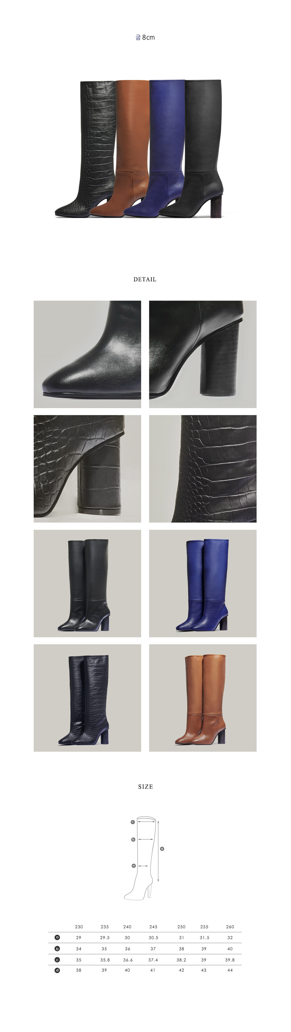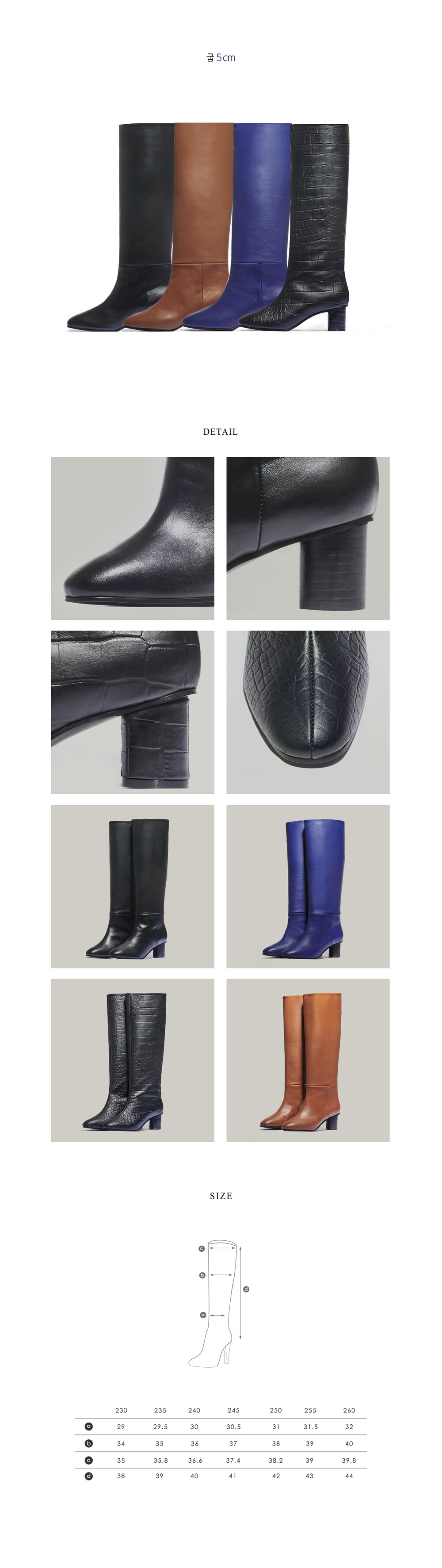 + 통부츠 라인의 패턴 특성상, 종아리 가장 넓은 부분을 기준으로 사이즈 선택을 하시는 것을 권장드리며 같은 사이즈라 하더라도