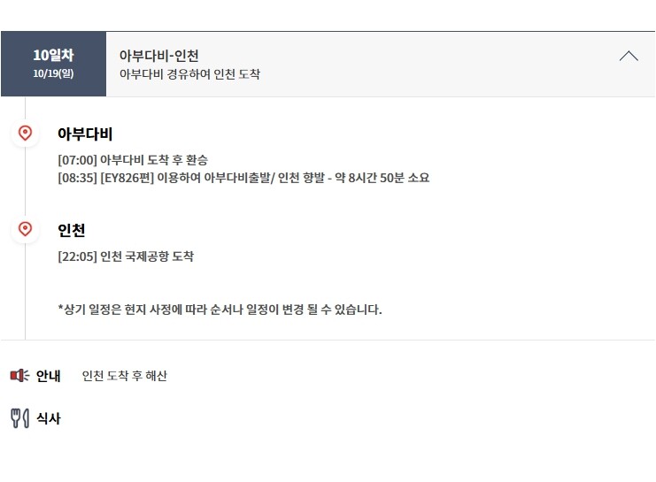 26년 일정은 항공이나 동선이 조금씩 상이합니다!