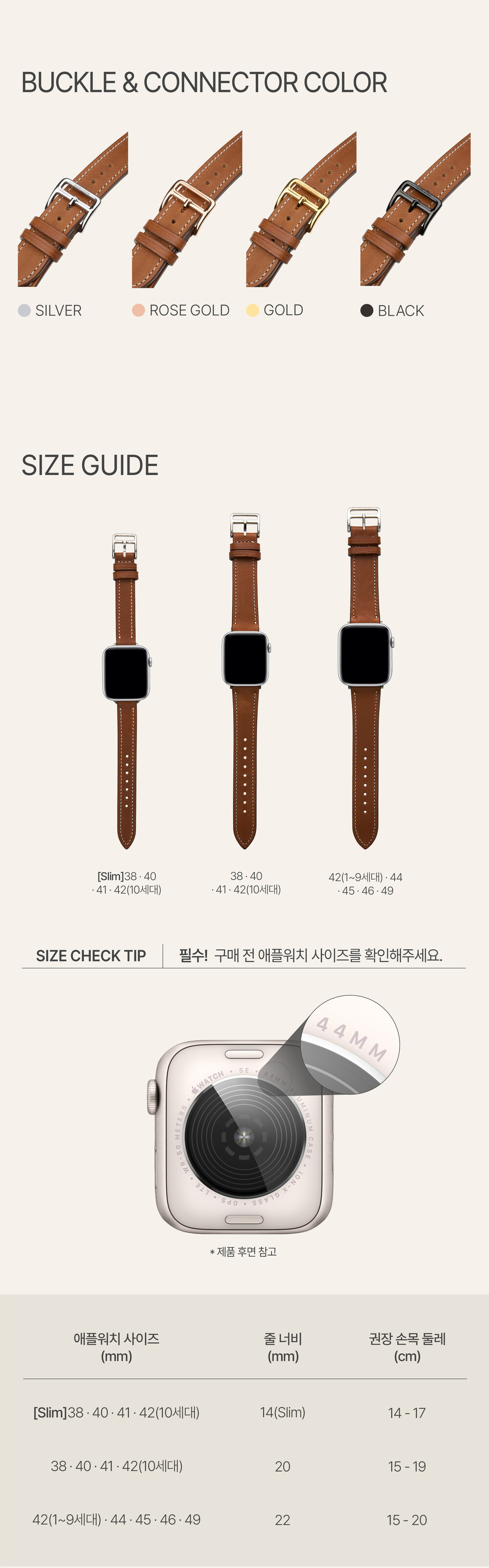 애플 워치는 밴드 너비로 사이즈 선택하면 쉽고요.