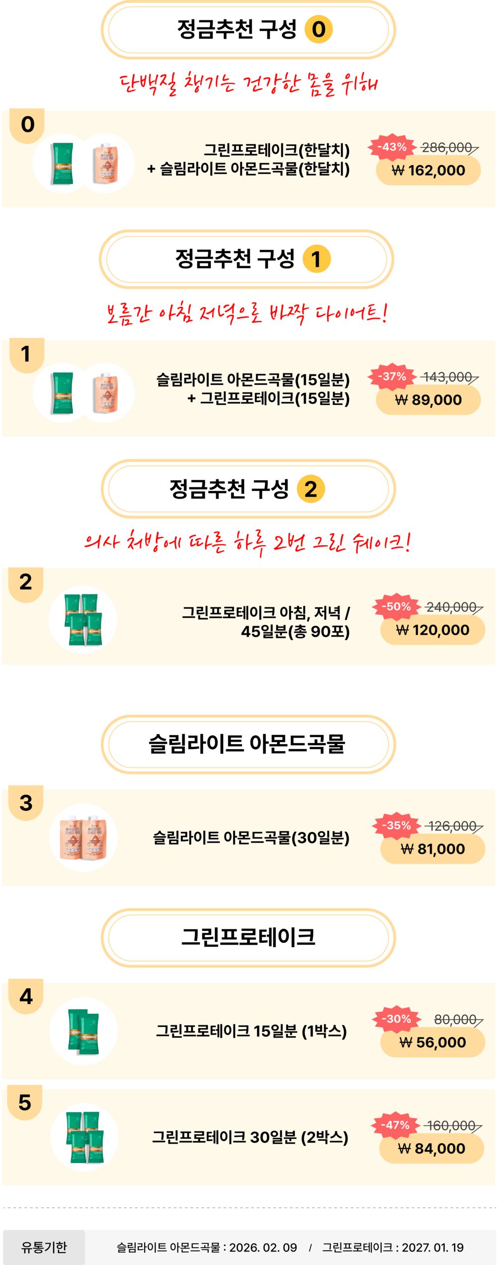 5. 한달치(2박스): 160,000원 -> 84,000원(-47%)