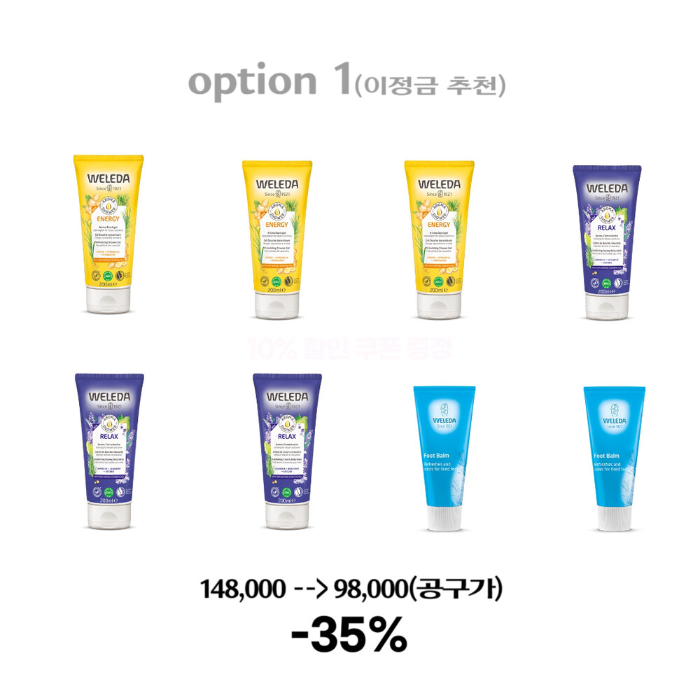 옵션 1 : 에너지 200ml 3개 + 릴렉스 200ml 3개 + 풋 밤 2개