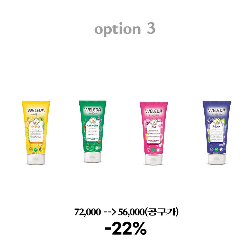 옵션 3 : 에너지 200ml 1개 + 릴렉스 200ml 1개 + 하모니 200ml 1개 + 러브 200ml 21개